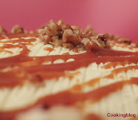 Fazer este bolo foi um desafio para uma cozinheira amadora... um bolo com 3 camadas, creme de merengue, decorado com caramelo e nozes. Mas sou fã de tudo o que tem caramelo, por isso resolvi arriscar e no final valeu bem a pena. O creme de merengue para recheio e cobertura deve ser feito com muito cuidado, seguindo criteriosamente as instruções (como não deixei arrefecer completamente o merengue o creme talhou quando comecei a juntar e bater a manteiga, e tive de repetir...mas cozinhar é isso mesmo, aprender com os erros!).