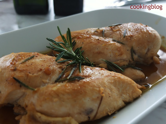alecrim, e, em seguida, estufado em vinho branco. Finalmente, a adição de sumo e