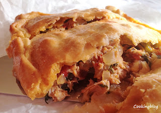A preparação desta empanada ficou bem mais simples utilizando uma massa pré-preparada à venda no El Corte Ingles (podem optar por tamanho de tarte em formato rectangular ou por doses individuais de empanadillas). Constitui uma refeição rápida de fazer e bem saborosa, sendo uma boa opção para o aproveitamento de restos.