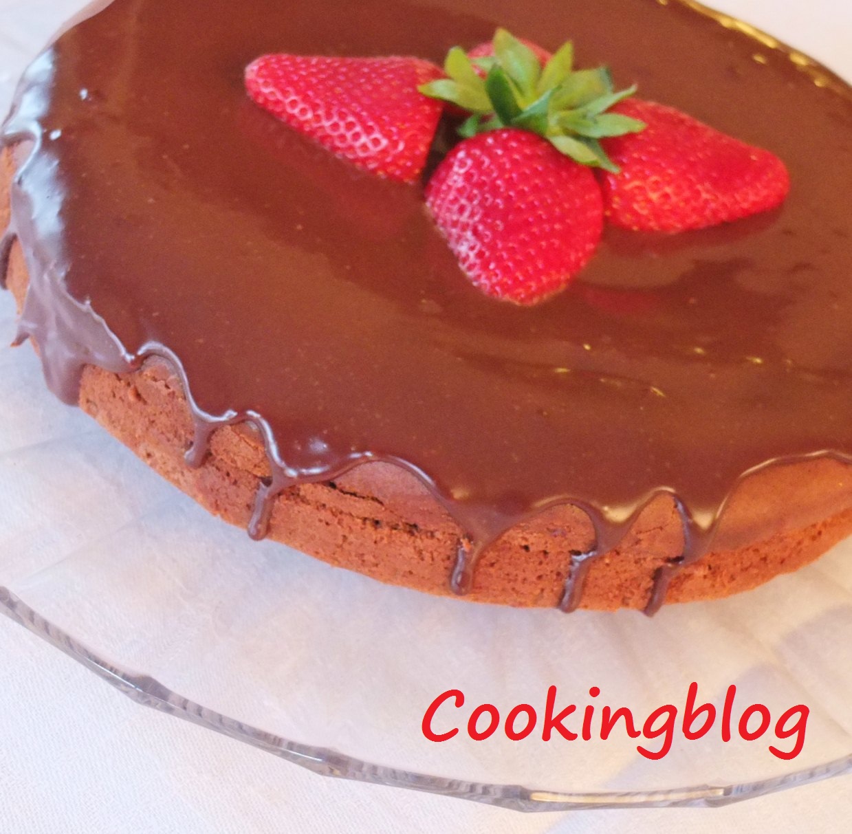 Cortar o bolo ao meio e rechear com um pouco de ganache. Cobrir o bolo com a restante ganache e decorar com morangos.
