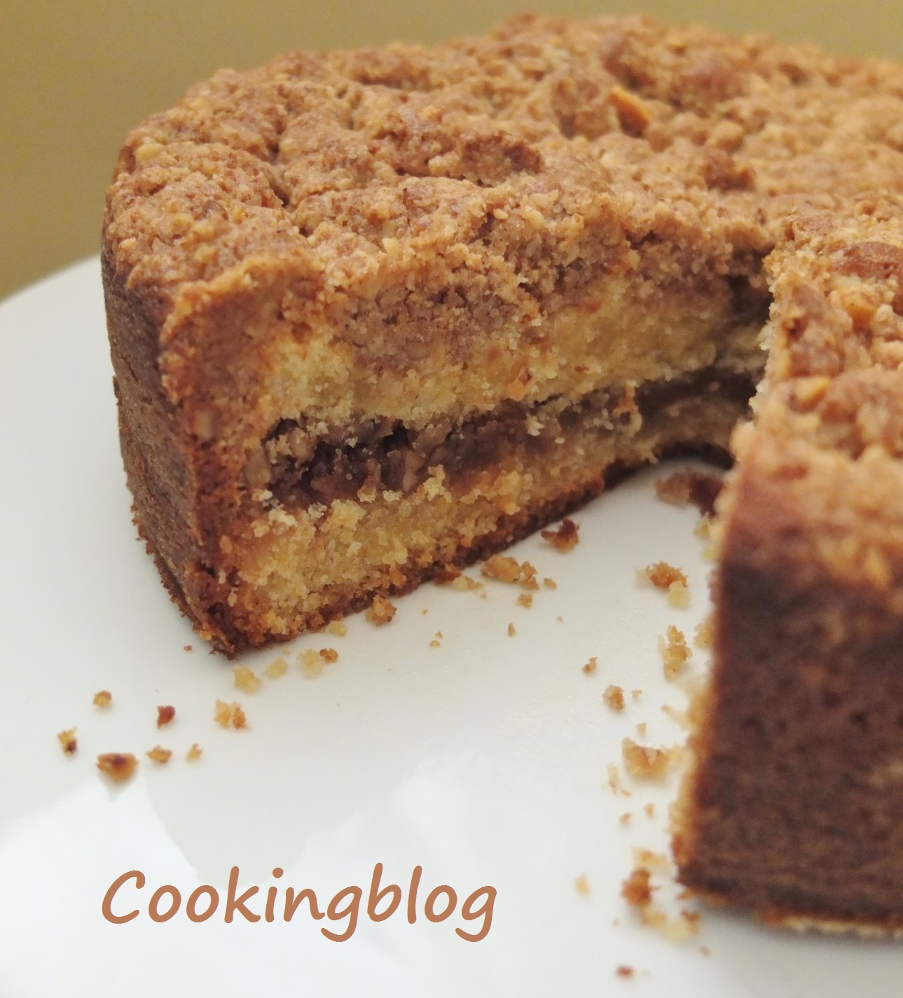 Quando vi pela primeira vez esta receita no livro "The Cake Bible", de Rose Levy Beranbaum estranhei não encontrar café na lista de ingredientes. Engano, pensei. A autora refere este bolo como um dos seus favoritos e o mais delicioso streusel coffee cake que alguma vez comeu, e por isso só podia ser bom. Mas porquê coffee cake? Não foi preciso procurar muito para perceber que o termo se refere a uma classe de bolos destinados a serem consumidos com um café, seja ao pequeno almoço ou lanche, um "coffee break" ou qualquer outro evento em torno de um café. Assim, um bolo de café não contém necessariamente café. Pode ser quadrado ou retangular, em forma de anel, ou redondo. O bolo de café pode ser aromatizado com canela ou outras especiarias, sementes, nozes e frutas e tem frequentemente uma camada de streusel ou crumble crocante no topo.